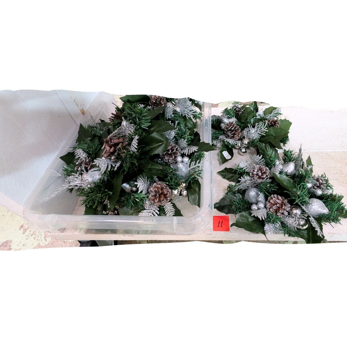 Partij 11 kunststof Kerstgroen voor Markt en HandelPartij van 8 stukjes Kerstgroen voor decoratie