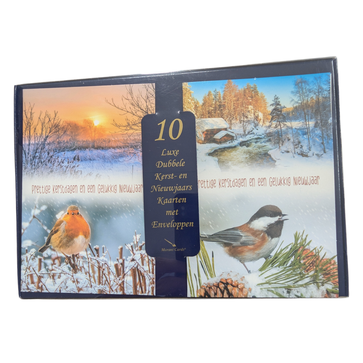 Partij van 60 assorti foliedoosjes serie C met prachtige, luxe kerstkaarten, dubbel met envelop. 10 stuks verpakt in mooie foliedoos, diverse motieven.